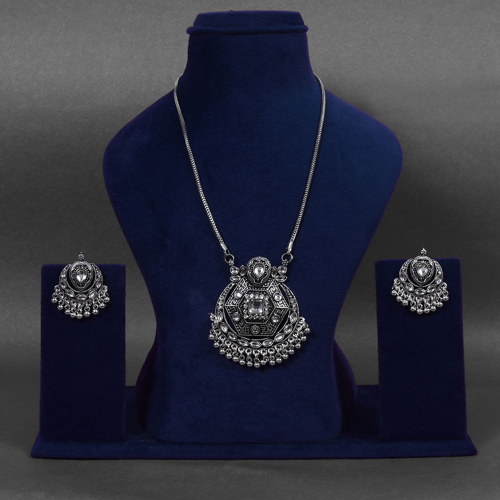 Ridhar Oxidized Silver Necklace Set in Silver Color